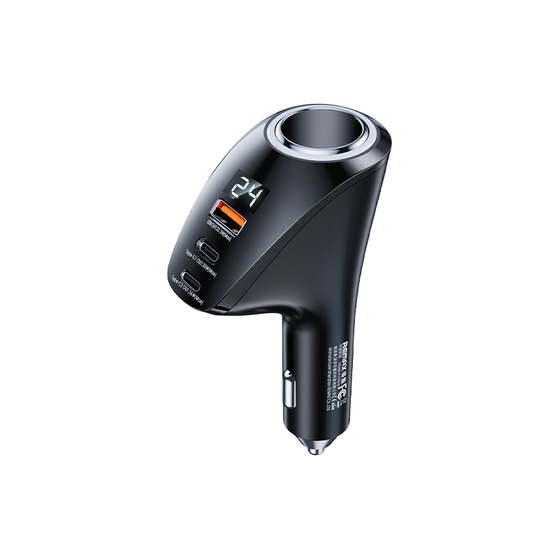 125W 3-Port Fast Charging Car Charger with LED Voltage Display | Dual Type-C + USB-A