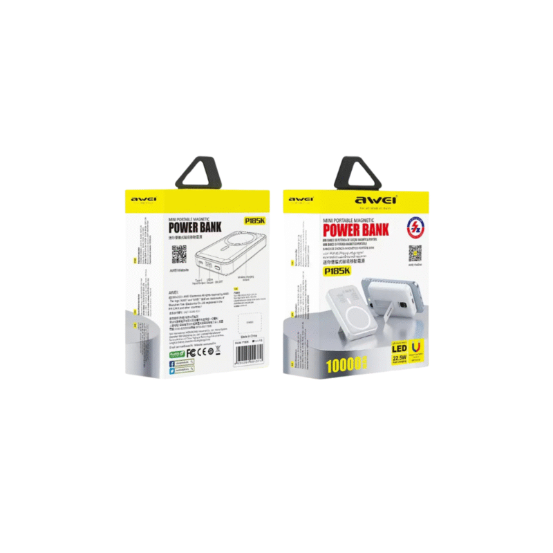 AWEI P185K Mini Magnetic Power Bank 10000mAh – 22.5W Super Fast Charging | LED Display | Stand Holder