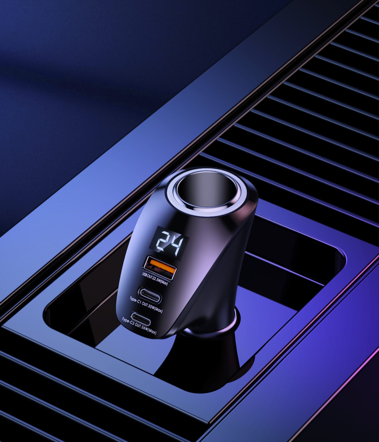 Upgrade your in-car charging experience with this 88.5W Fast Car Charger. Designed with one USB-A and two Type-C ports, it supports simultaneous fast charging for smartphones, tablets, laptops, and other USB-powered devices.