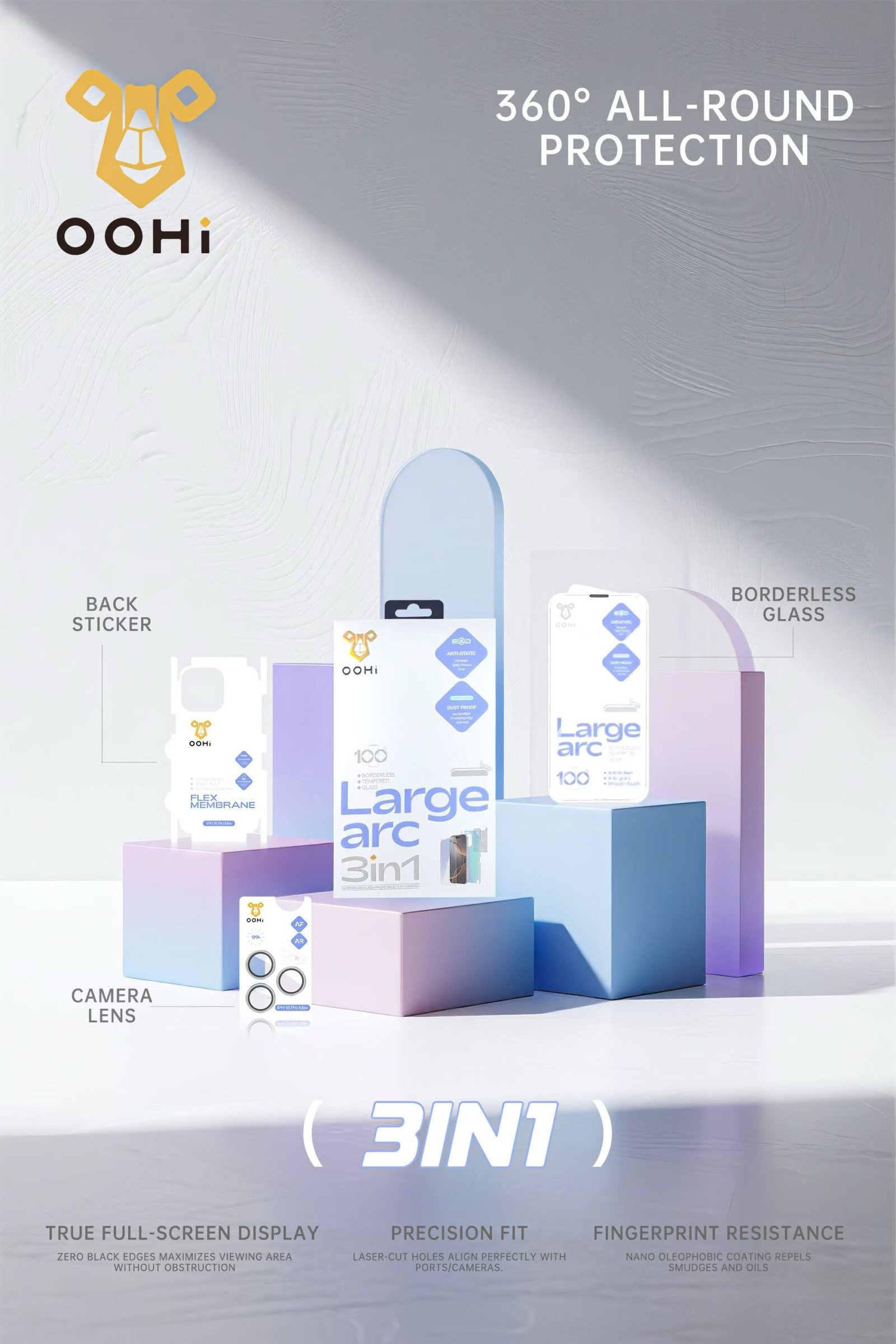 KeepHone™ 3-in-1 Large Arc Premium Protection Pack (Borderless Tempered Glass + Camera Lens Protector + Flexible Back Sticker)