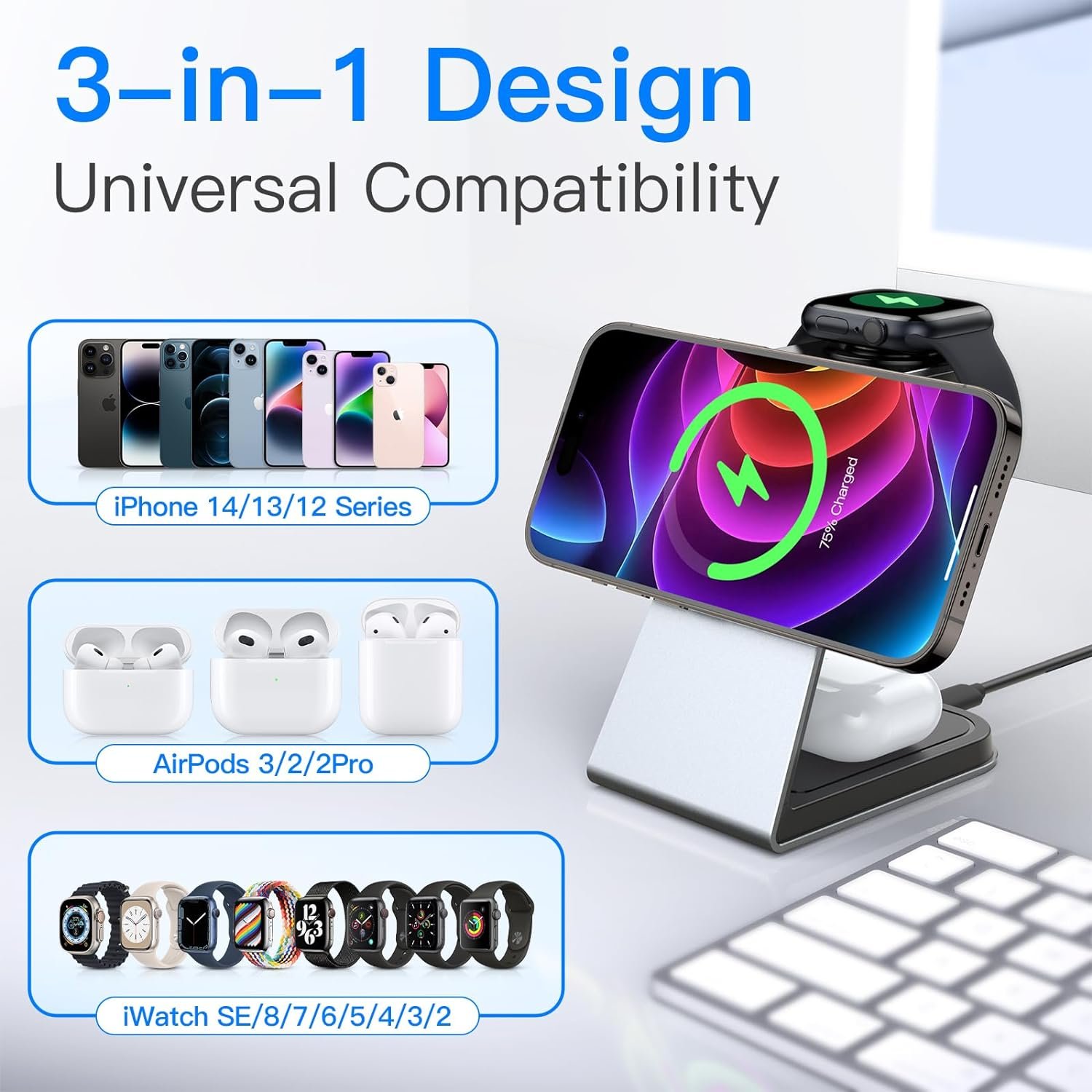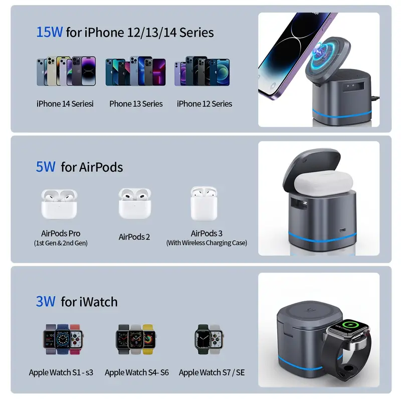 ✔ 3-in-1 Charging Solution – Charge iPhone + AirPods + Apple Watch simultaneously