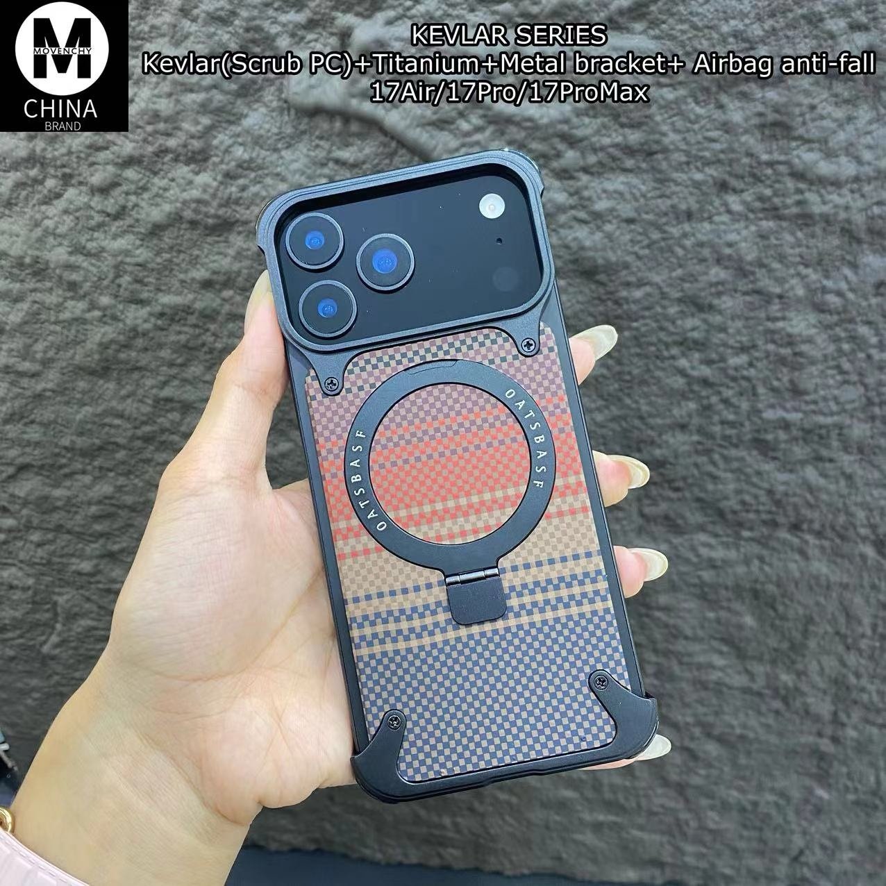 • Integrated Metal Bracket (Kickstand): The circular OATSBASF metal ring on the back isn’t just for style—it functions as a sturdy, adjustable kickstand. Perfect for hands-free video calls or watching content in both portrait and landscape modes.