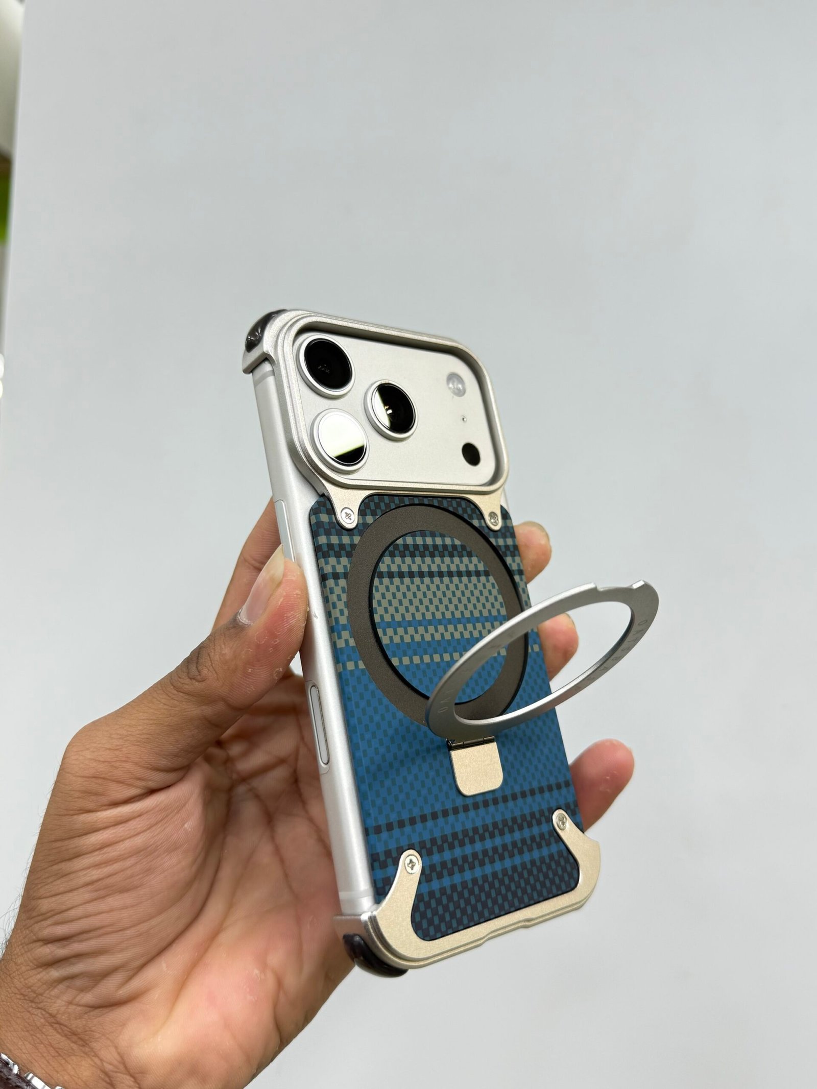 • Hybrid Material Construction: Crafted with “Scrub PC” (Polycarbonate) featuring a premium Kevlar-inspired texture that is anti-fingerprint and non-slip, fused with real Titanium elements for a high-end finish.