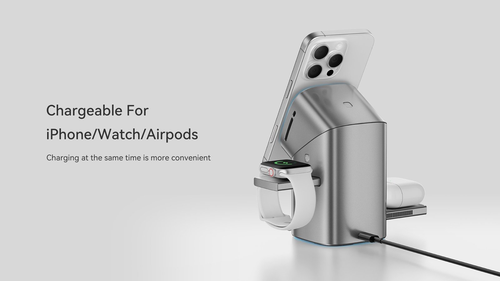 3-in-1 Charging – Charges Smartphone + Smartwatch + Earbuds at the same time